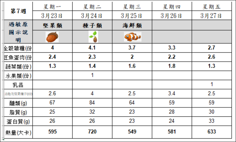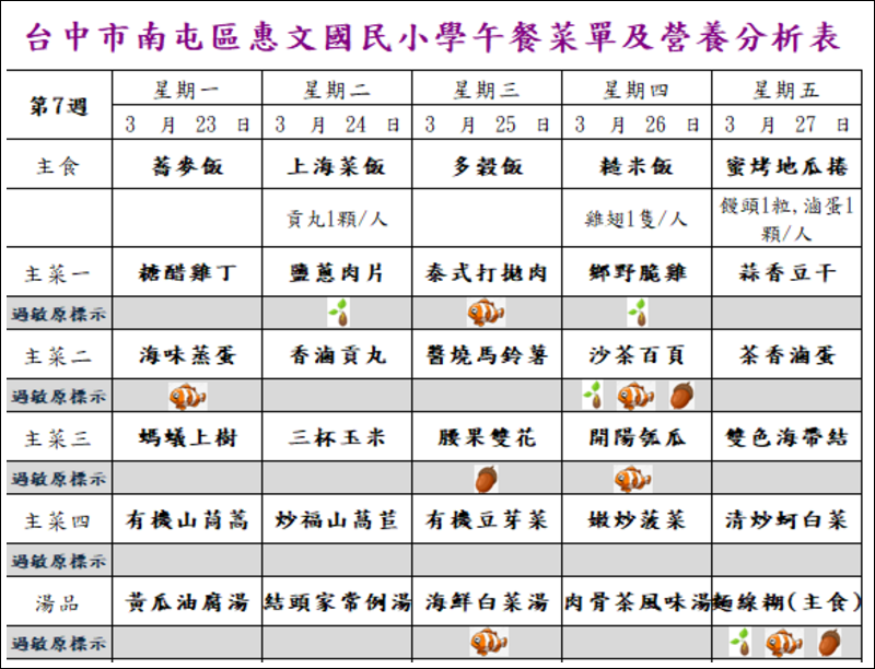 每週午餐菜單