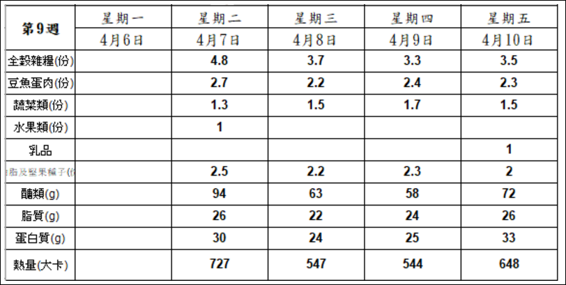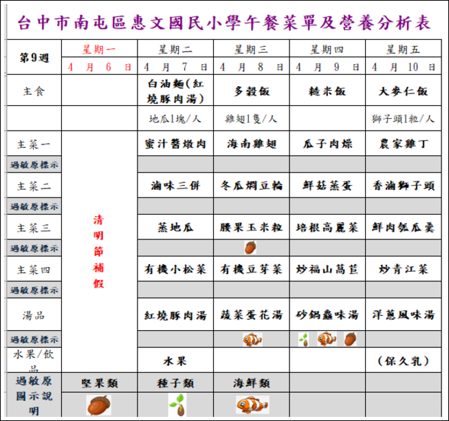 每週午餐菜單