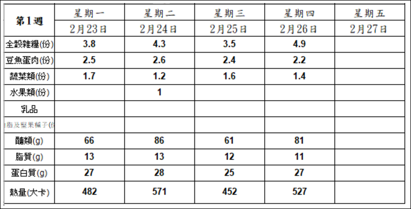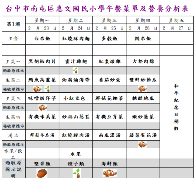 每週午餐菜單