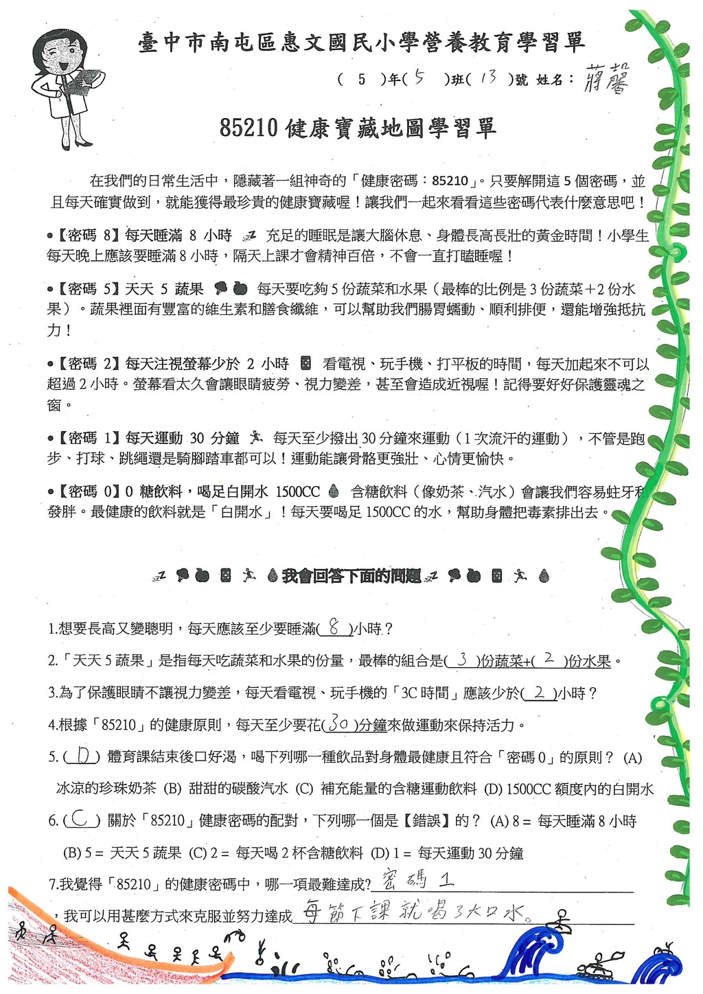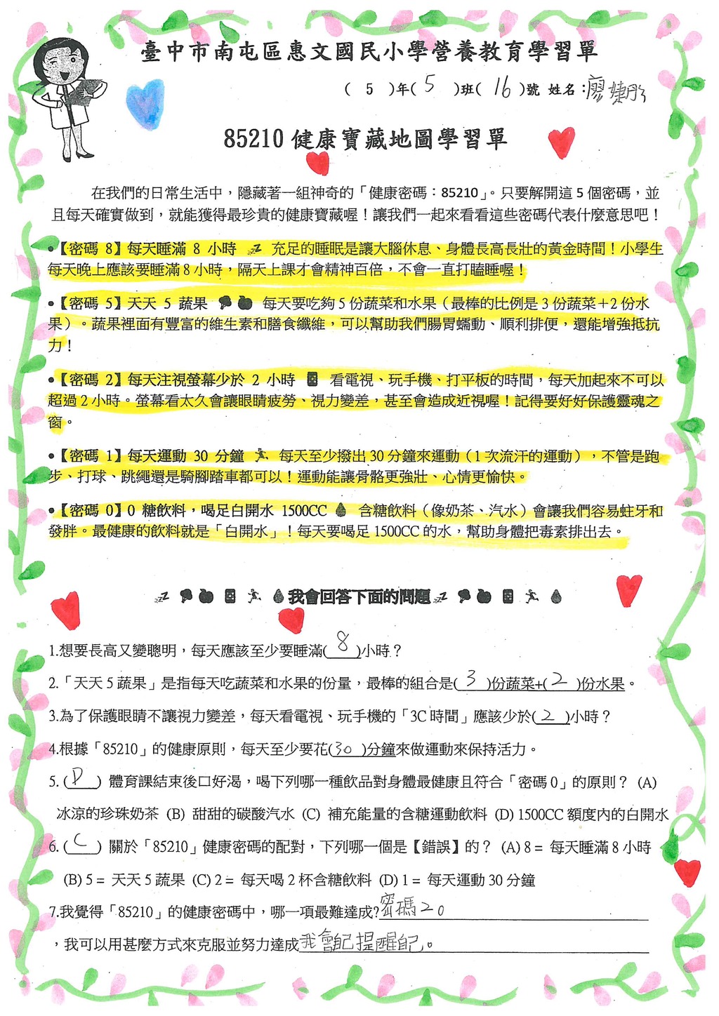 主題:85210健康寶藏地圖學習單